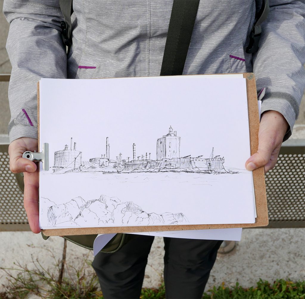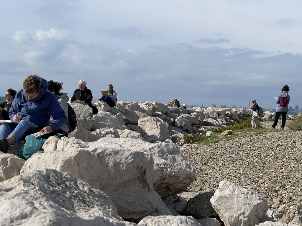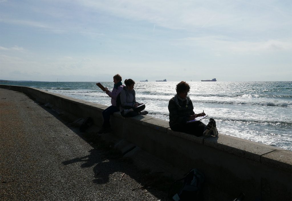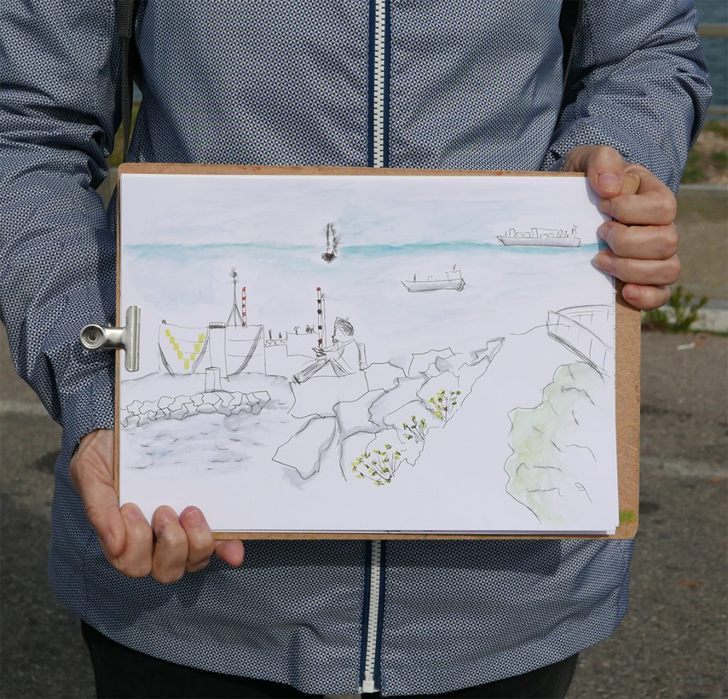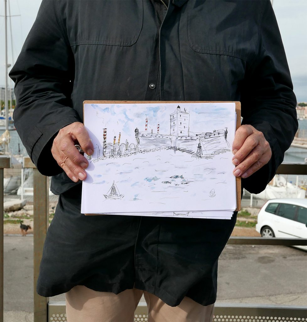 Chaque participant est accompagné dans la pratique du dessin sur le vif par un mot, un conseil pour des interprétations personnelles des points de vue. Malgré une hésitation, une maladresse dans son tracé, le dessin n’est que justesse. » Sébastien MARIAT